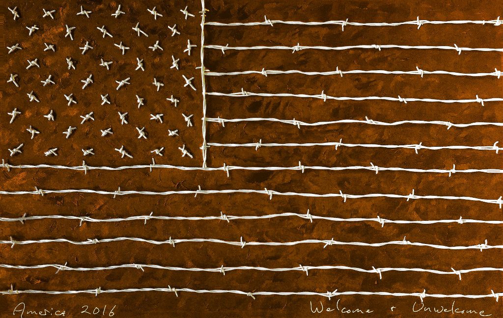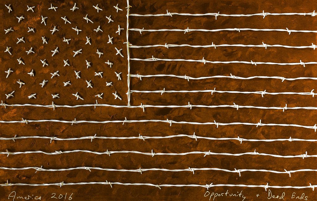 Freedom + Slavery (Painting #6 of 11) George Mullen, Freedom + Slavery, 2016, barbwire and oil on canvas, 30 x 48 inches. Copyright © 2016 George Mullen. All rights reserved. Freedom + Slavery (Painting #6 of 11) George Mullen, Freedom + Slavery, 2016, barbwire and oil on canvas, 30 x 48 inches. Copyright © 2016 George Mullen. [...]